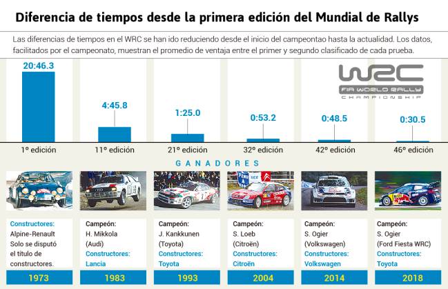 El Mundial de Rallys se aprieta más de 20 minutos en 45 años,.
