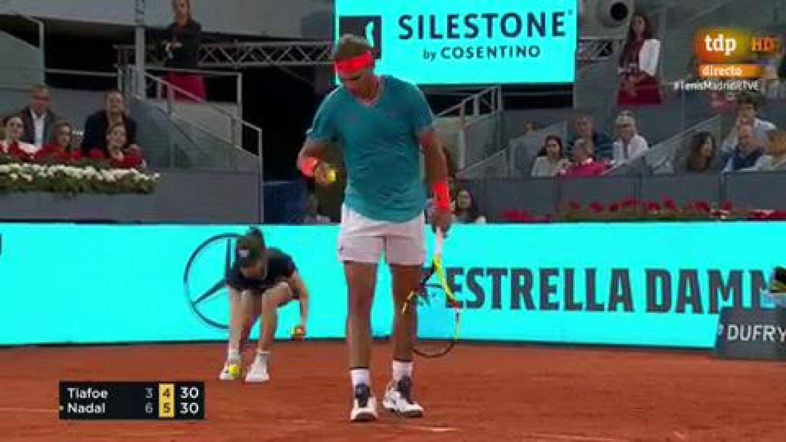 Tampoco sacaba mal el de Hyattsville (Maryland), pero sus 225 km/h resultaron menos efectivos que el 'ace' a 158 km/h de Nadal en el segundo set; para los que dicen que no es técnico. Fueron más los errores no forzados los que le pusieron en un aprieto en el cuarto juego, con la primera ocasión de 'break' para Tiafoe, salvada por el español.En el siguiente juego fue Nadal el que sí aprovechó la segunda de las dos de que dispuso y volvió a ponerse con ventaja. Tiafoe salvó la primera con un potente saque directo, pero después tuvo que jugar con su segundo y Rafa no perdonó una buena derecha a la esquina.