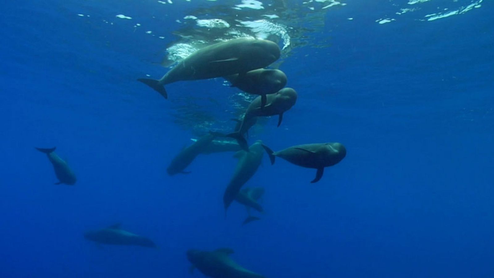 entrañable manada de calderones tropicales convive con otras especies