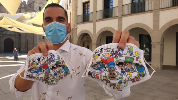De este modo, asegura su diseñador, «quiero ayudar a que el arranque de curso esté lleno de imaginación, arte, y alegría con unos dibujos repletos de color y que puedan identificar como símbolos de su ciudad». No en vano, Fernando dice sentirse muy gratificado por el encargo hecho por la concejalía de Educación de Villanueva, al poder contribuir a proteger de una forma creativa a los niños «además de que van a poder contar con un bonito recuerdo cuando pase la pandemia», añade. Para realizar los diseños él mismo ha tenido que regresar a su infancia, dice, y verlo todo con los ojos de un niño para plasmar aquello que pueda llamarles la atención, cuenta. Otro detalle que no le falta a las mascarillas es la sonrisa en todos los personajes que aparecen, «puesto que los niños van a ocultar la suya con la mascarilla, pues que solo con su mirada y la alegría de los diseños transmitan energía positiva y buenas vibraciones», concreta. Cada escolar recibirá dos mascarillas que son aptas para 50 usos que les será entregadas por los docentes.