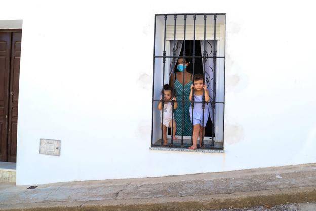 Lola Romero, vecina de la localidad, cuenta que los contagios han golpeado de lleno a su familia, después de que su marido y sus dos hijos hayan dado positivo coincidiendo con su luna de miel. «Nos casamos el día 17 de agosto y estamos pasando aquí la luna de miel, es decir, el permiso de matrimonio. Yo me incorporaba el día 1, pero hemos tenido que pedir la baja hasta que no tengamos negativo», lamenta desde la ventana de su vivienda, acompañada de sus dos pequeños. «Ten cuidado con el bicho», dice el más pequeño.